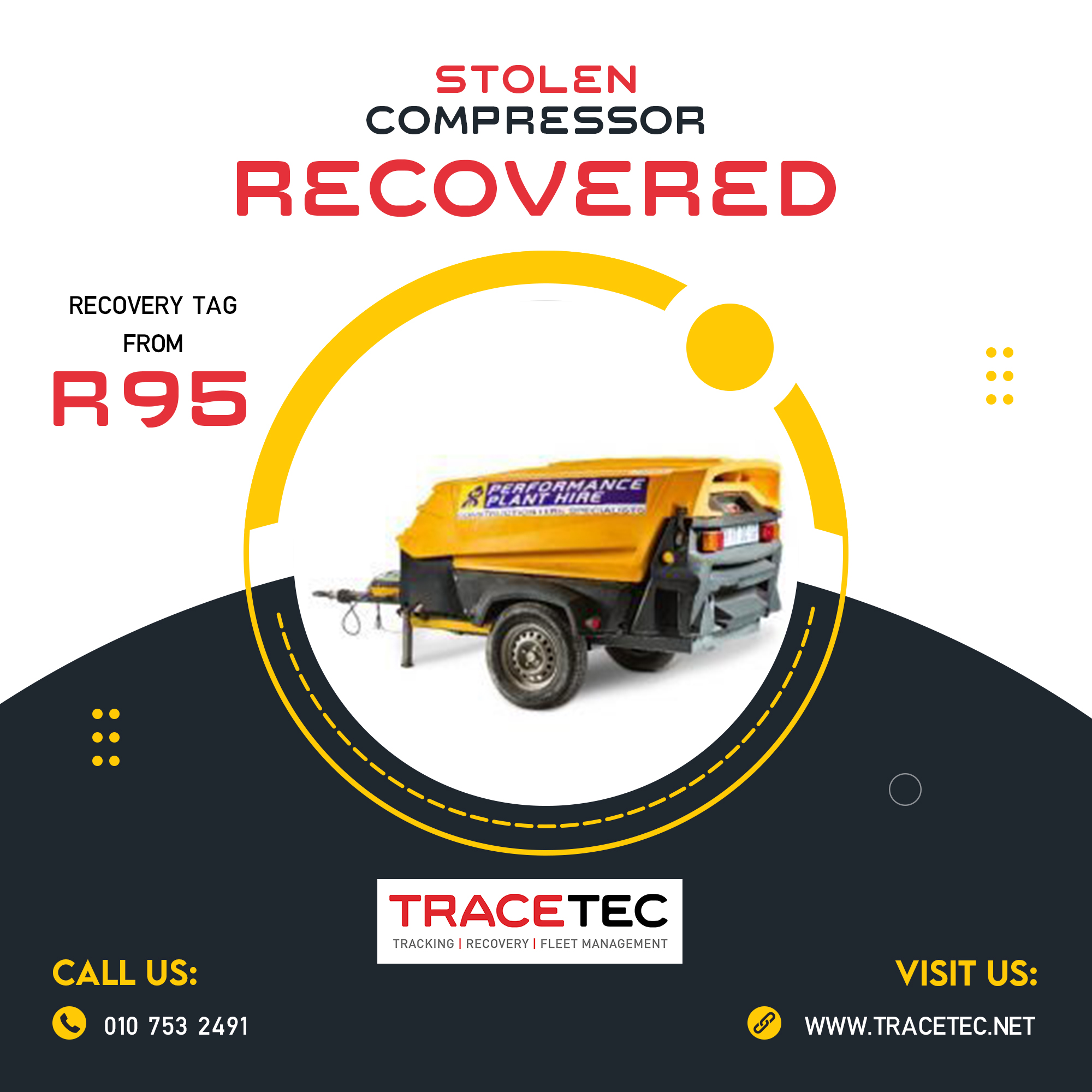 Tracetec`s client contacted our 24-hour control room to report one of their compressors stolen.